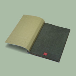 I created a paper to emulate the blue of the wall and the writings. The title was tooled in large letters in gold, and gold leaf was added to the border of the boards. The Japanse stitching was done in a light blue dyed thread so it would blend in and not stand out.